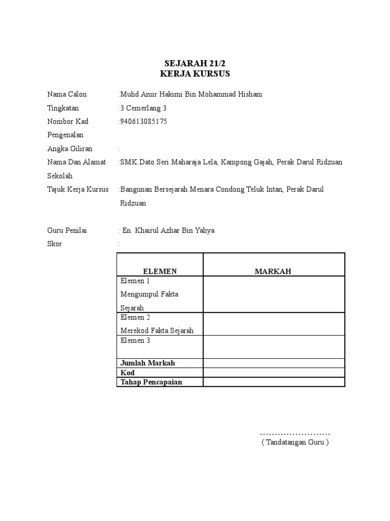 Muka Depan Kerja Kursus Sejarah Pdf